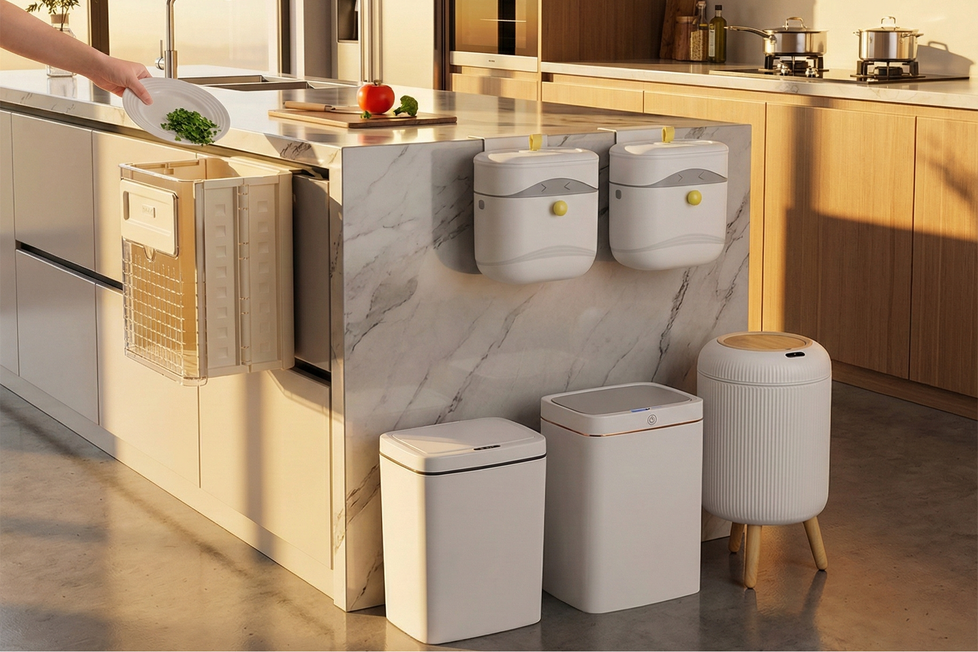 Kitchen Waste Basket with Lid for Cabinet Door